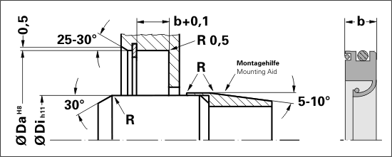 PTFE shaft seal, with spring-supported sealing lip, for out-of-round shafts or large shaftplay with additional axial sealing function.